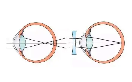 要矫正近视,就需要通过外部光学镜片的作用,将提前汇聚的光线“拉回”视网膜上。而凹透镜恰好具有这样的功能——凹透镜是一种中间薄、边缘厚的透明光学镜片,它对光线具有“发散作用”:平行于主光轴的光线经过凹透镜折射后,会向远离主光轴的方向偏折,这些偏折后的光线看起来像是从凹透镜前方的一个“虚焦点”发出的。